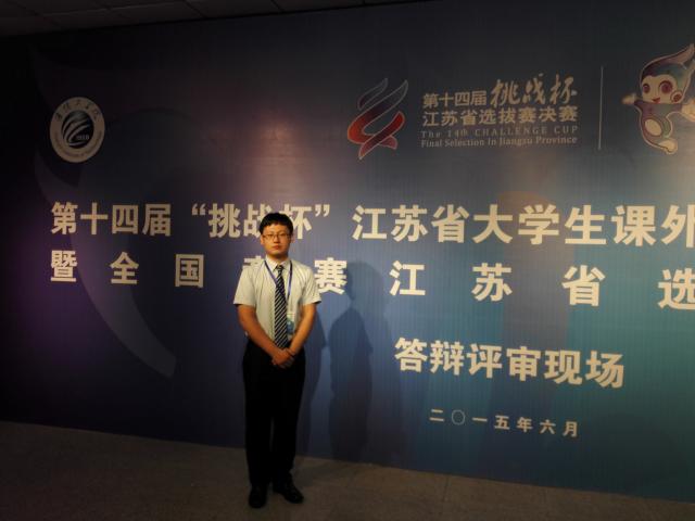 2015年,是史全林丰收的一年:首先,他以第一作者发表一篇SCI论文并检索;其次,他以第一完成人参加第十四届“挑战杯”全国大学生课外学术科技作品竞赛,获江苏省决赛二等奖、全国总决赛硕士组三等奖;另外,以第一作者发表了一篇中文核心论文;以第一作者申请并授权一项实用新型专利……