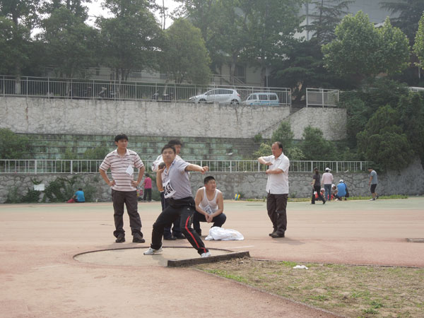 团结一致,勇于拼搏的精神,赛场上尽显英雄本色。同时他们还本着“文明、学习、团结、奋进”的宗旨,在比赛中表现出了良好体育道德风尚。安全学院的戚绪尧老师仍不负众望,获得了男子甲组铅球第二名的好成绩。