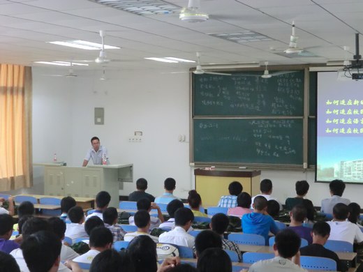 随后,刘永杰老师则深入浅出的向新生传授了一些如何更快适应大学环境的方法和技巧。谈及如何适应新的校园环境,刘老师说:“要尽快熟悉校园的地形,要多向高年级的同学请教,同时还要承担一定的社会工作。”与此同时,刘老师表示,不仅要适应大学的自然环境,还要适应校园中的人文环境,语言环境,社会环境等,在生活中还要学会包容同学不同的生活习惯,做到对人宽,予己严,不自我为中心才是与人相处之道。