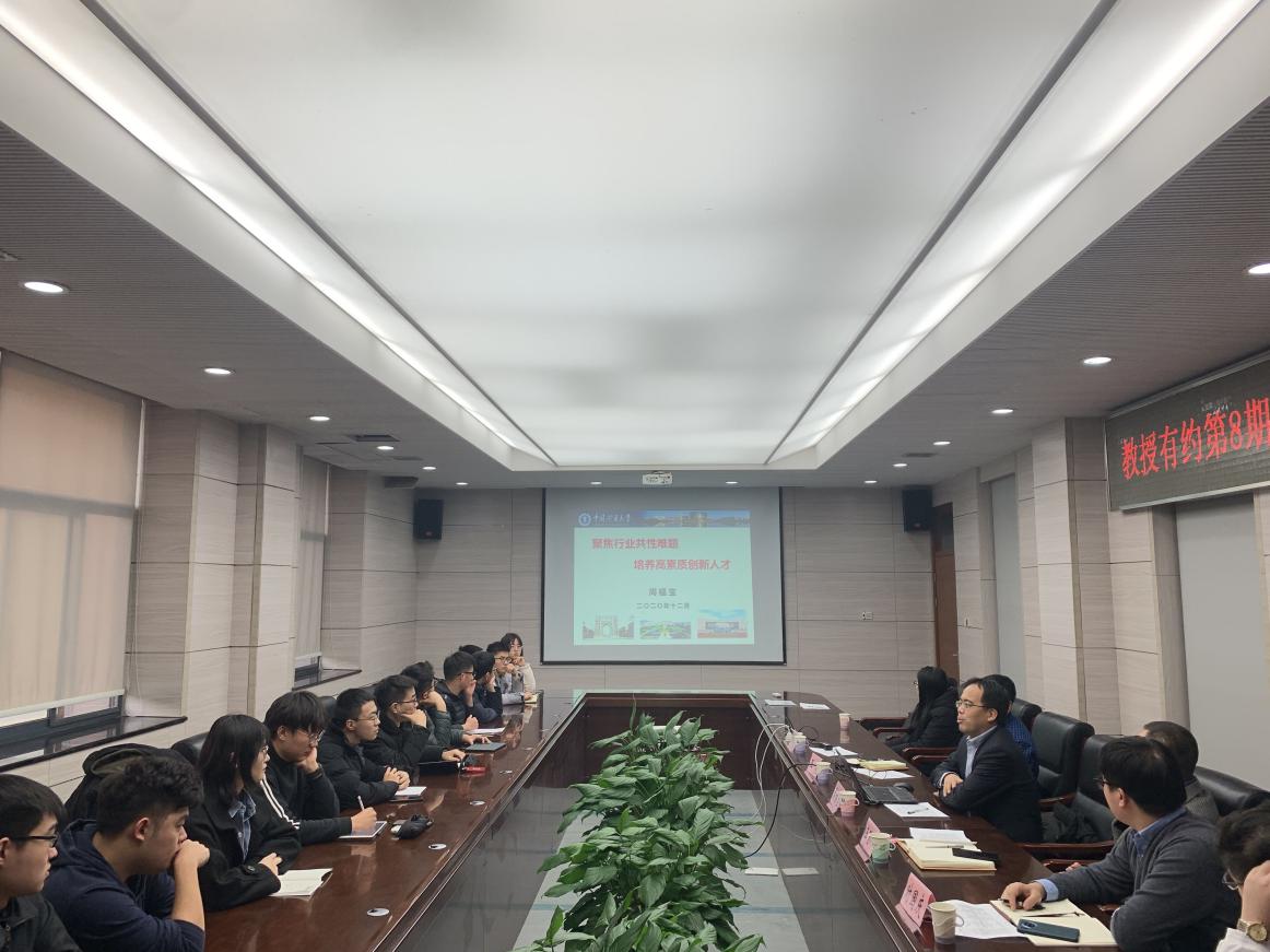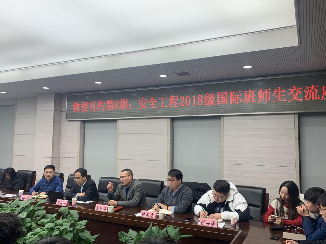 12月24日,安全学院第八期“教授有约”——安全工程2018级国际班师生座谈会在矿业科学中心A412举办。副校长周福宝教授主讲。院党委书记王思华、2018级国际班班主任时国庆副教授、学工办主任刘世通以及2018级国际班全体学生参加本次活动。活动由王亮副院长主持。
