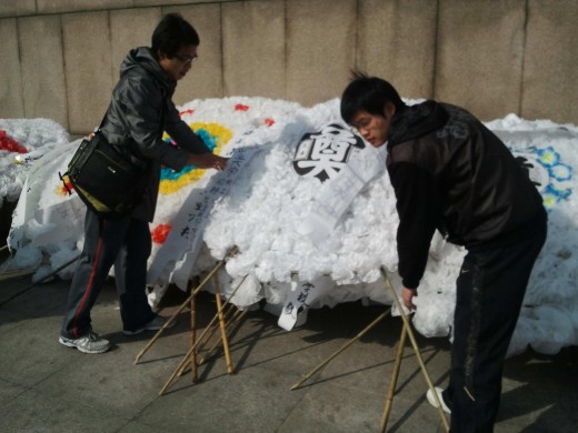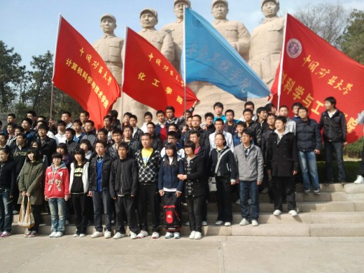 上午8:00,来自五个学院的80余名同学在二食堂广场集合,在五个学院生活部部长的带领下从北门出发前往徐州市淮海战役纪念塔。同学们在淮海战役纪念塔为革命烈士敬献花圈,在淮塔工作人员的组织下,全体同学在纪念塔前进行了悼念仪式,所有同学都肃立默哀以此来表达自己对牺牲的先烈们的尊敬之情。之后同学们仔细的观看了纪念塔下边的碑文和先烈英名录,以及党和国家领导人的题词。面对着这数目惊人的烈士英名,同学们更是感到幸福生活的来之不易。随后,同学们走入了淮海战役纪念馆,与导游解说员共同回顾了那场惊心动魄地大会战。看着馆内珍贵的战争照片和当年会战时的各种武器以及逼真的战场模拟,同学们都感触颇深,爱国情绪涌上心头。