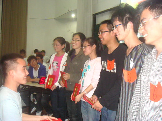 答题结束后,由刘筱婕老师对本次活动进行点评,她表示通过现场知识竞赛进行党团知识学习是十分有趣而新颖的,她还指出希望通过场上队员们的优异表现,大家要深刻地懂得尊重历史,尊重知识。刘筱婕老师还对场上的六支各具特色的队伍分别进行了精彩的点评,最终,由三位09级同学组成的三号代表队以500分的高分获得了本场知识竞赛的冠军。