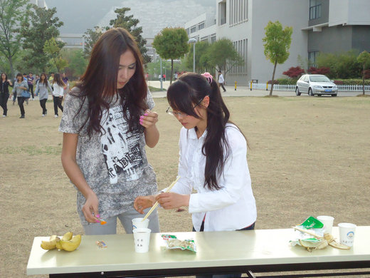 女生部于4月27日下午5点在教五草坪举办趣味“食”物比赛。本次比赛由女生部部长孙鹏飞、副部长唐玉华主持,来自韩国三级