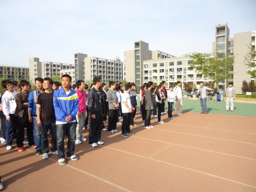 下午四点整,同学们准时到达第一田径场。负责人将方阵同学大致分为7行9列,按照人员身高错落排列,极为有序。没有太极训练时优美柔和的音乐,不变的是太极训练亟需的团结合作、整齐划一的精神。在负责人高昂的“立正、稍息、齐步走”口令中,同学们展开了积极的配合训练,以蓬勃的姿态投入到了操练过程中,精神饱满,昂首挺胸,起步有力,团结一致。待方阵进场仪式操练若干次后,负责人转而排练了届时韩国三级