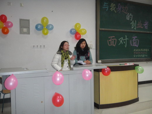 首先609画室围绕自身创办画室的经历向大家讲述了大学生应如何有效利用大学时间,如何思考创业,如何发现商机等内容,指出创业要敢于创新,并要坚持不懈的做下去,要从身边的小事做起,相信创业就在身边。同时他们也和同学们分享了自己的创业感受,其中代芬同学强调创业一定要选择自己感兴趣的方面,更要怀着一颗不怕吃苦,永不言弃的心,努力为之奋斗。接着609画室向大家展示了画室学员的一些代表作品,赢得了在场同学们的一致赞叹,最后在场的同学们就围绕“创业”以及对“609”画室建立的一些问题向嘉宾提问,三位同学都逐一作出了详尽细致的解答,讲座最终获得圆满成功。