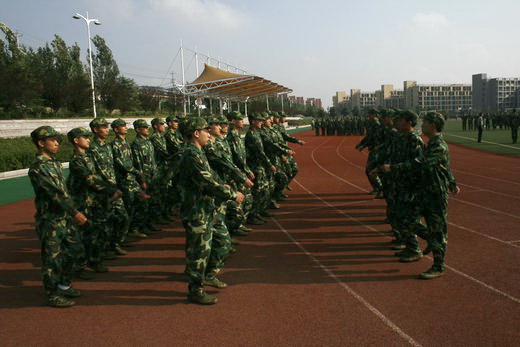 150多位10级新生开始了为期近三周的军训生活。军训场上,在教官们响亮的口令声中,各排同学认真的进行着立正、跨立、停止间转法、碎步看齐、敬礼以及脱帽等基本军事动作的表演。虽然烈日当头,但新生们严格的按照教官的指令,认真学习各个动作。对于新生动作做不到位的地方,各位教官不厌其烦的亲手指导与示范。严格的军训确实很苦,但是绝大多数新生都以饱满的姿态面对军训。在军训场上,每一位新生都严格要求自己的动作做到标准,整个队伍的动作做到整齐。