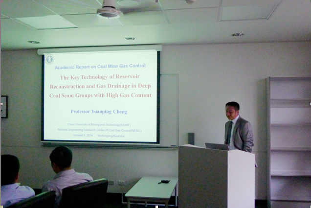 在澳期间,在卧龙岗大学召开了煤矿瓦斯治理技术交流会,卧龙岗大学、当地煤矿企业等单位派代表参会,会上程远平教授作了“The Key Technology of Reservoir Reconstruction and Gas Drainage in Deep Coal Seam Groups with High Gas Content”的报告,林柏泉教授做了“Dynamic Characteristic of Crack Evolution with Applying Hydraulic Fracturing in Coal Seam”的报告。会后,与卧龙岗大学商定今后在科学研究、教师互访和学生交流等方面加强合作。