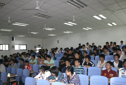 同学发出号召,极大地鼓舞了同学们的士气,讲座在热烈的掌声中结束。