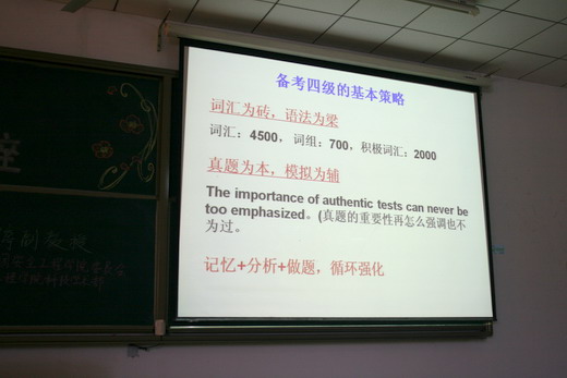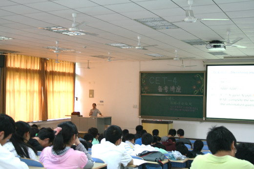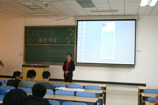 讲座后,主办方还组织了经验交流会,08级优秀学生顾范君同学与09级同学们分享了自己的四级备考经验和应试窍门,并对同学们关心的问题进行了详细的解答,给同学们不少启发。