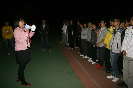 团委书记李秀老师及10级辅导员李成刚老师亲临梅苑田径场,为队员们加油助威。