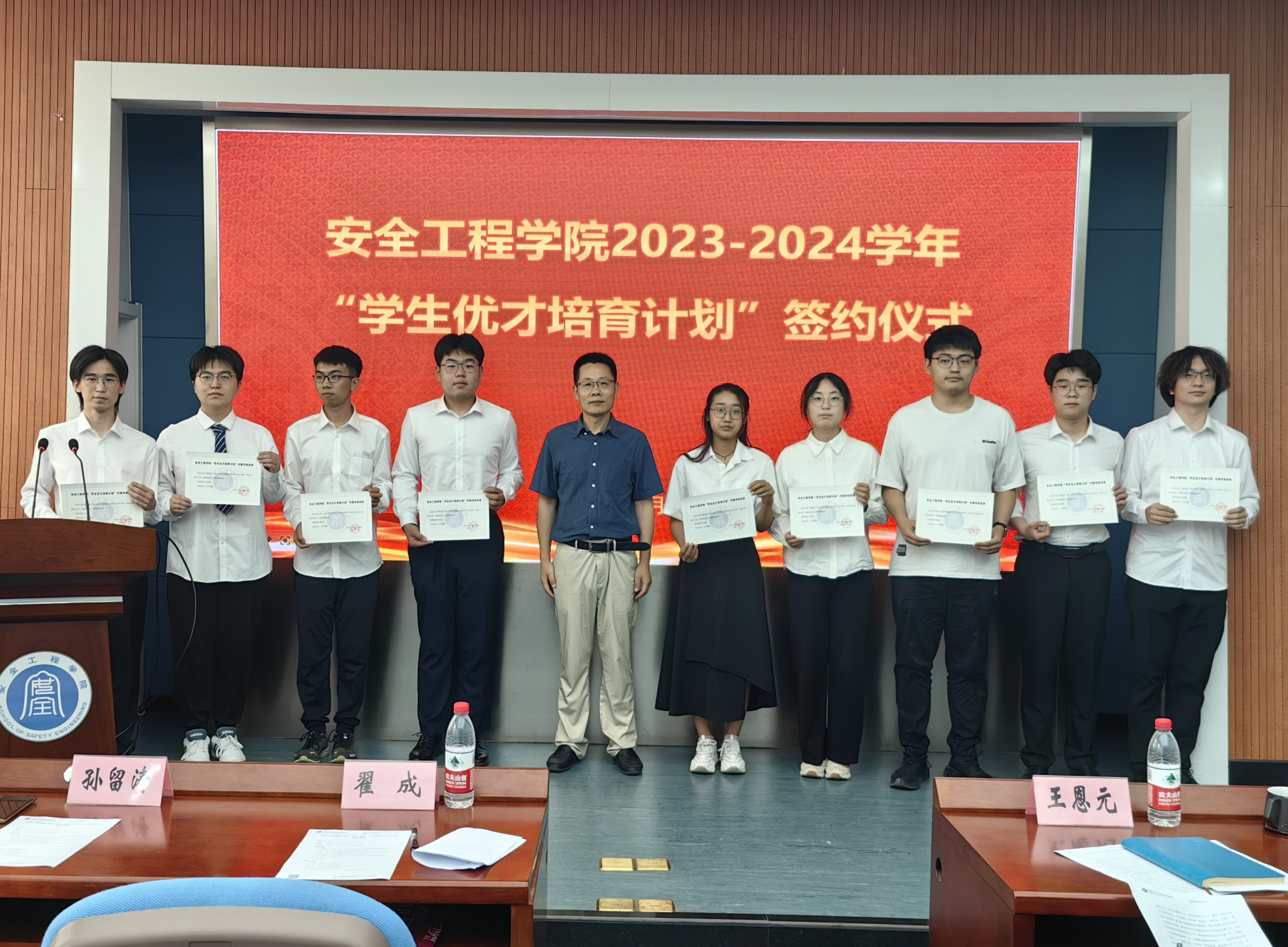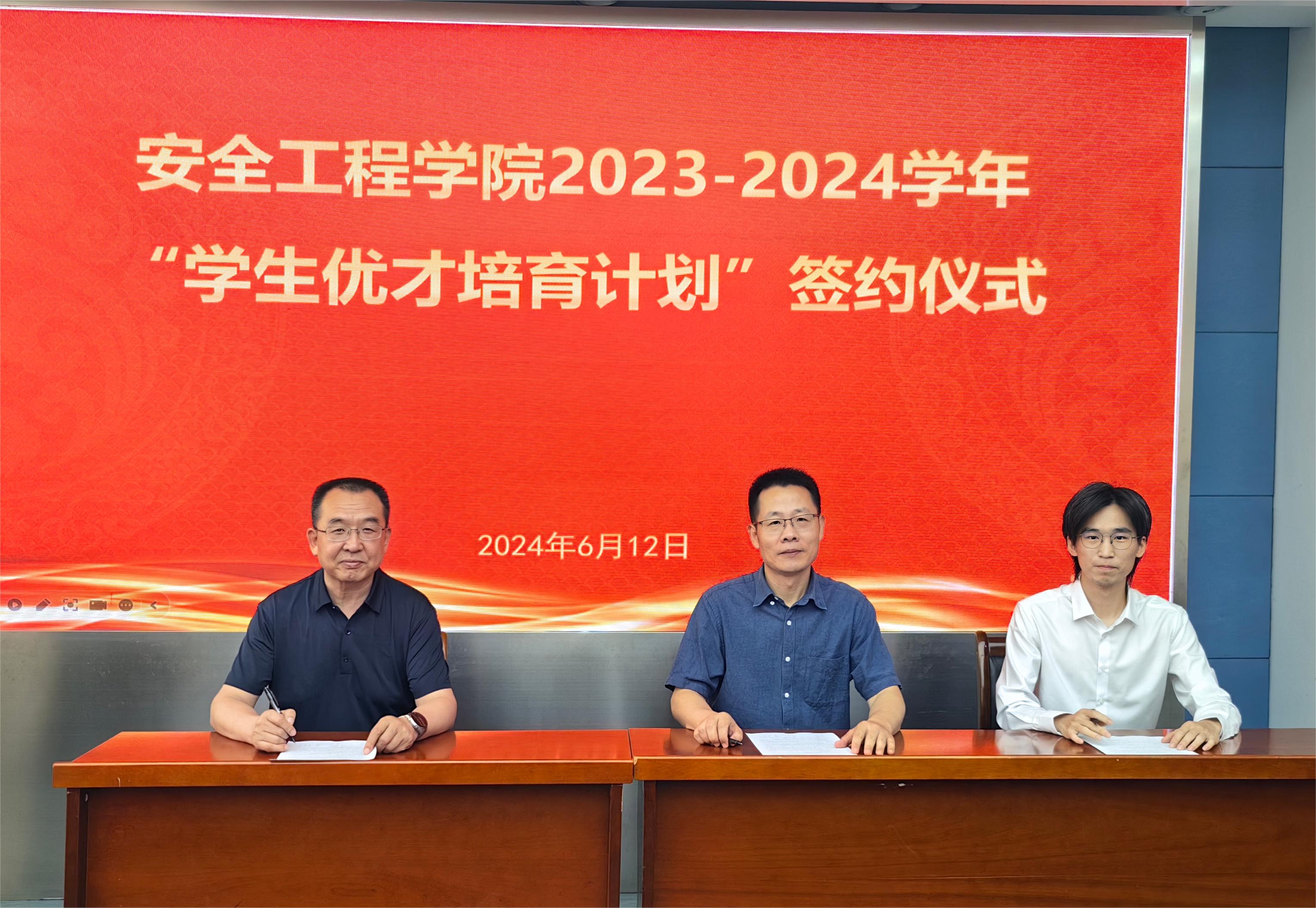 副院长刘晓斐宣读“优才培育计划”入选名单,院长翟成代表学院与导师、学生共同签订了“优才培育计划”培养协议。导师代表刘应科教授结合自身成长经历鼓励同学们以此为契机,既要珍惜矿大求学时光和机会,努力学习好专业知识,不负祖国和青春,也要深入现场一线,脚踏实地,勇于拼搏和奋斗。学生代表李孟阳讲述了自己在矿大学习生活中的感悟以及加入优才计划半年来所取得的成绩与收获,并表示将继续秉承“开拓创新、追求卓越”的精神,勇于创新、敢于实践,扎根安全学科,服务国家能源行业发展。