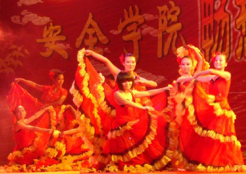 晚会在气势恢宏、情绪激昂的乐队表演中拉开序幕,精彩纷呈的节目轮番上演。异域风情的舞蹈《西班牙女郎》、机械舞《Screaming》和民族舞《维族舞&哈萨克拍手舞》等节目,展现了全院师生共祝祖国60周年的的喜悦之情;由韩国三级
