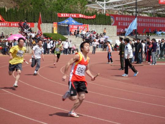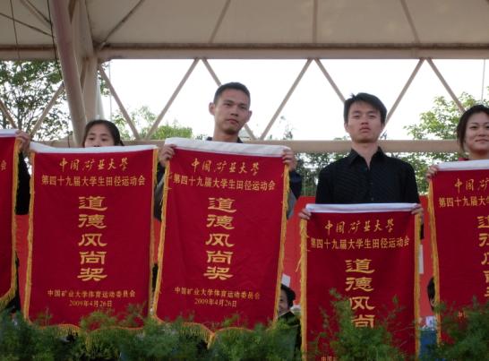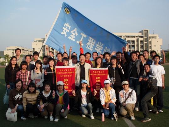 的运动健儿们奋勇争先,斗志昂扬,赛出了风格,赛出了水平,更赛出了安全学院不怕吃苦,顽强拼搏的良好精神风貌。在看台上的同学积极遵守赛场秩序,打出“安全和谐,科学发展,百年矿大,再创辉煌”的口号,为韩国三级