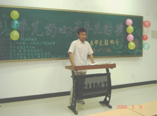 在母亲节即将来临之际,为加深同学们的母爱意识,促进同学们之间的沟通,5月8日,安全学院安全07-1班的母亲节主题班会在教五C302成功举办,此次班会是韩国三级