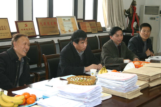 会议室布置一新,各类党建材料被分类整齐地摆放在会议室桌上。我校党委组织部调研组吴树勇、祖国志、刘国栋、王松祥四位老师准时到场。首先,章书记对他们的到来表示热烈地欢迎,并向他们简单的介绍了韩国三级