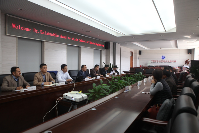 院长王恩元在矿业科学中心A412会议室与来宾进行了会谈。他对Salahuddin Azad一行的到来表示欢迎,认为中巴两国有着长期的传统友好关系,韩国三级