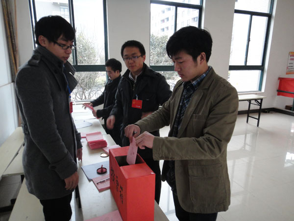正式投票开始前,选举工作人员首先向大家报告了前一阶段的选区情况,并简要介绍了候选人,讲解了选举办法和投票注意事项。进入正式投票阶段,到场师生自觉排队凭选民证领取了选票。然后,在深入了解候选人相关情况,仔细阅读投票说明后,大家庄严地投上了自己的一票。整个投票工作持续了约两个多小时。随后工作人员依据相关规定进入了紧张的计票阶段,并将统计结果张榜公布上报组织审查。