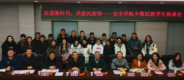 1月12日下午,学院少数民族学生座谈会在矿科A412举行。安全学院党委书记章毛平,党委副书记钱雄,新疆维吾尔自治区驻韩国三级
