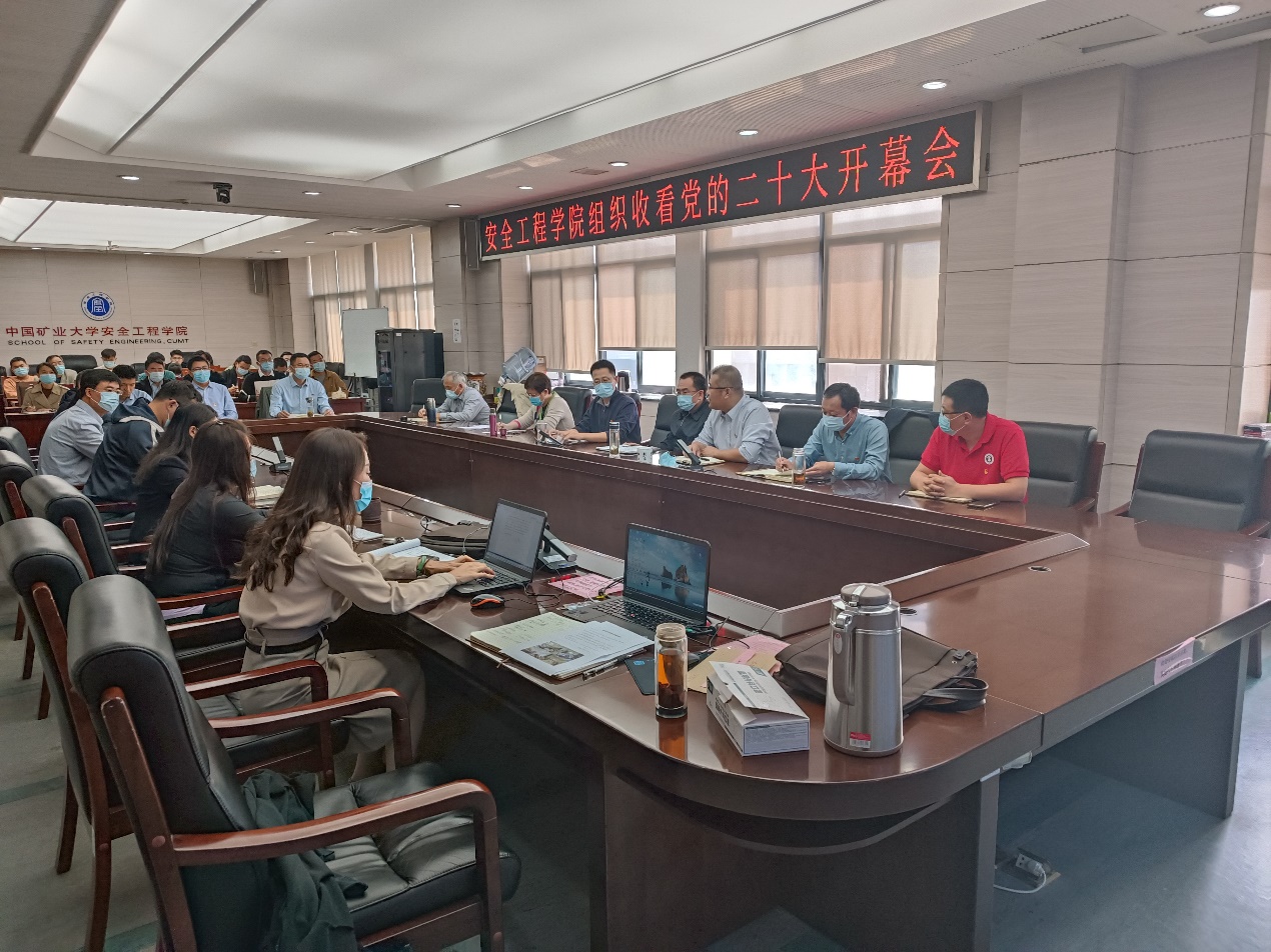 党委分别在矿业科学中心A412、学院A200报告厅、梅三党员活动室设置会场,集中组织收看中国共产党第二十次全国代表大会开幕会,学院党委委员、党支部书记、各科室负责人,以及学生代表共计150余名师生党员集中收看直播,认真聆听学习了习近平总书记代表十九届中央委员会向大会作的报告并展开座谈交流。