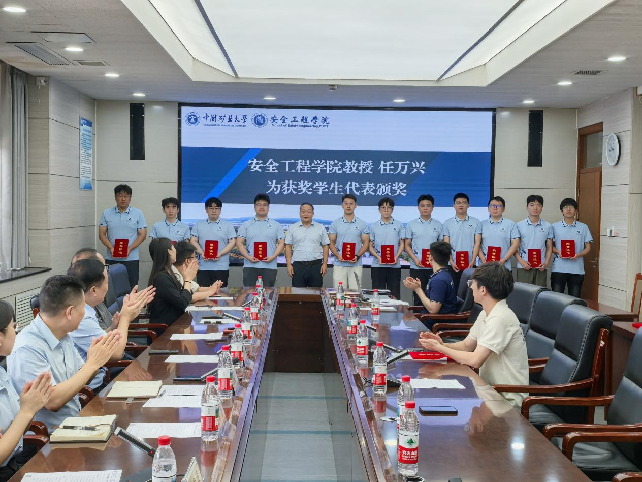 安全学院教授任万兴,徐州吉安矿业科技有限公司首席技术专家刘祥来分别为获奖学生颁奖。矿业学院采矿工程2021-7班白俊杰,韩国三级