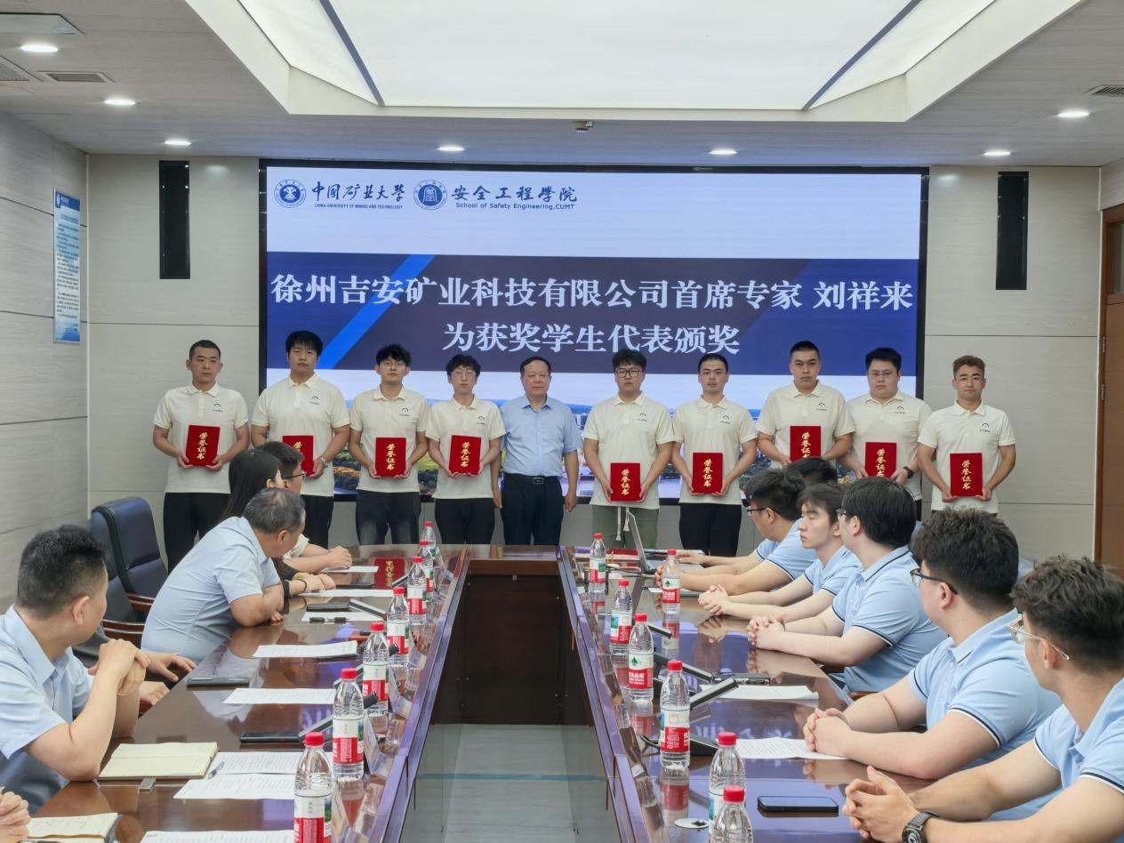 6月13日上午,学院在矿业科学中心A412举办第三届“吉安”奖学金颁奖仪式。徐州吉安矿业科技有限公司总经理王士华、首席技术专家刘祥来徐、市场总监程方圆、品牌经理孙蕾,安全学院党委副书记邵波、教授任万兴,学工办主任刘世通、矿业学院辅导员刘洋及安全、矿业20名获奖学生参加本次活动。仪式由韩国三级