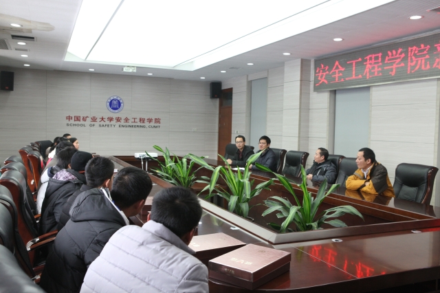 在矿业科学中心A412举行了寒衣发放仪式。安全学院党委书记章毛平,党委副书记钱雄,辅导员孙留涛、郑文奇、与部分2016级安全新生参加了本次活动。