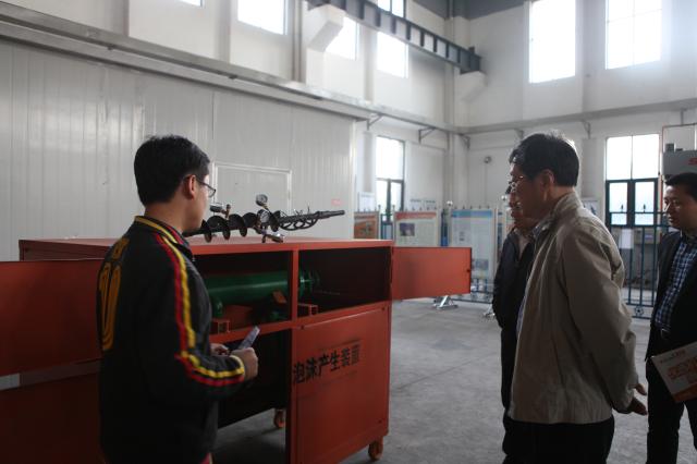 参赛作品“煤矿用高倍数无机固化泡沫防灭火技术及装置”。参赛同学史全林就作品准备情况进行了汇报。曹书记听取汇报后,充分肯定了参赛作品及学院在推进和完善作品所做的工作,对我校在第十四届挑战杯竞赛上获得好成绩充满信心。曹书记还就韩国三级