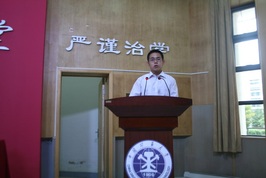 李忠辉副教授作为教师代表发言,他表达了对2011级新生的热情欢迎,并求同学们一定要善于学习和创新以及努力实现全面发展。随后,院学生会主席安全09-4班郭良军同学和11级新生代表朱云飞同学分别发言。最后,新生开学典礼在韩国三级