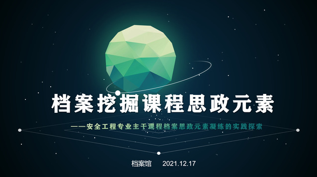档案馆馆长徐黎华,作题为《档案挖掘课程思政元素—安全工程专业主干课程档案思政元素凝练的实践探索》的专题报告,介绍了如何从专业、学科历史,馆藏档案,院士及知名教授学习、授课经历,学院历史发展重大事件与关键节点,其他教学成就等方面深入挖掘“课程思政元素”,助力学科与课程思政建设。
