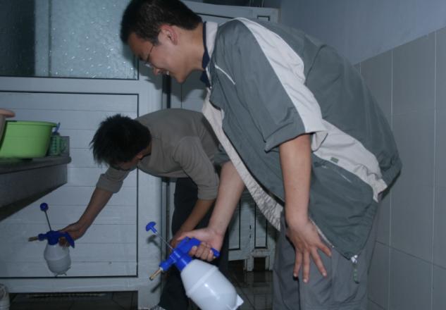 06级的男生宿舍,为他们进行了义务卫生宿舍消毒活动。
