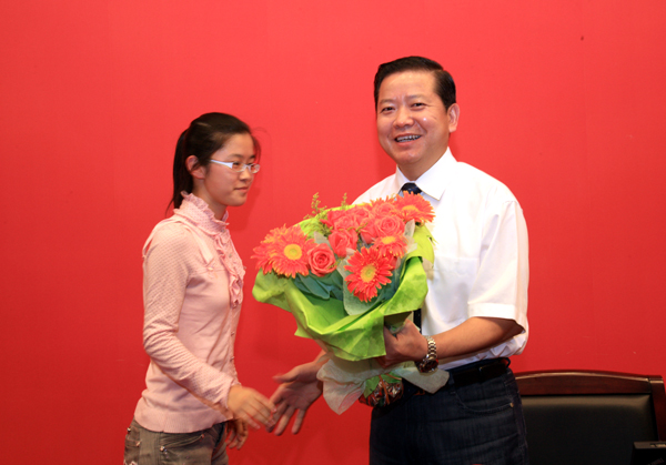 报告开始之前,我校学生代表为袁院长献花表达了对袁院长教师节的祝福。
