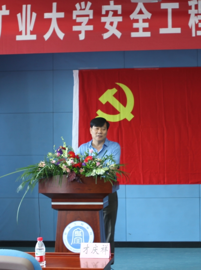 大会在雄壮的《国歌》声中隆重开幕。校党委副书记、纪委书记才庆祥首先发表讲话,他对安全学院第三次党代会的召开表示热烈祝贺。他说,全国高校思想政治工作会议不久前刚刚闭幕,目前是高等教育发展的一个新的大潮期,学校又在进行双一流建设,学院在新的形势下要有新的发展,新一届党委的产生意义重大。他指出,安全学院党委在以往的工作中取得了很大的成绩,要通过这次党代会,总结以往取得的经验和存在的不足,尽快适应新形势,在学科、党建上重新布局,拿出新举措,使得安全学院各方面都能再上一个新的台阶。他强调,学院的改革发展,要处理好党委和行政的关系、学科固本拓新的关系,要让优势学科更优,特色专业更特,在固本的同时要鼓励新兴学科、交叉学科的大力拓展,争取出更多的成果和培育更多的人才。目前矿业、安全等传统优势学科面临生源竞争、拔尖人才培养等诸多挑战,新的一届党委要积极主动谋划,要对学生提出热爱专业的要求。他希望全院师生,特别是全体党员要集中全部的精力,为了学科发展、为了学院的发展做出自己应有的贡献。