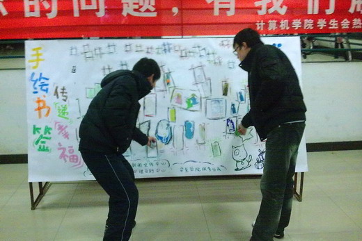 服务分队帮助各位作者送出他们精心制作的书签,传递作者们的祝福。