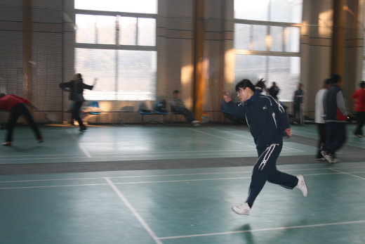 在12月4日与后勤代表队的比赛中,双方实力相当,比赛异常激烈,只见羽毛球在空中不断地来回飞逝,你攻我守,比分交替上升,老师们时而扣杀,时而吊球。精湛娴熟的技术赢得了现场观众的阵阵喝彩,韩国三级