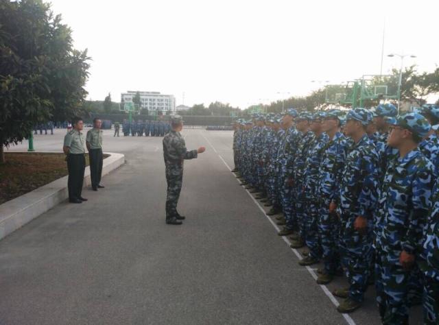 新生在教官的教导下已基本熟悉部分队列会操要求动作。下午,安全学院党委副书记钱雄与辅导员孙留涛检验安全新生连日训练成果。