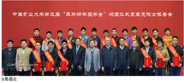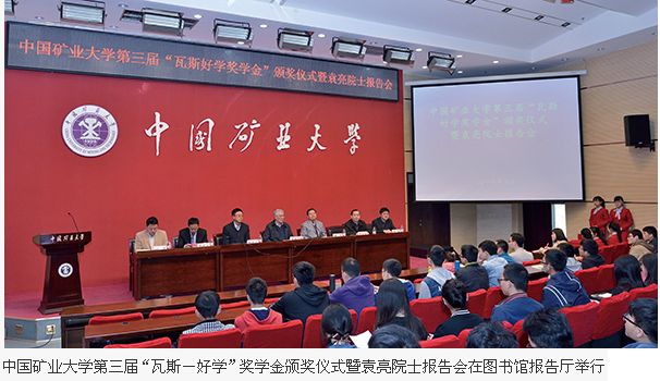 第三届“瓦斯-好学”奖学金颁奖仪式暨袁亮院士报告会在南湖校区图书馆报告厅举行。校党委副书记曹德欣,中国工程院院士周世宁、袁亮,学生工作处以及韩国三级
