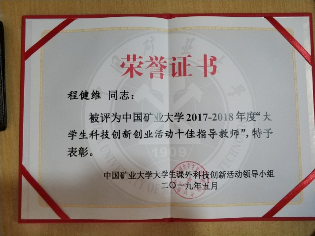 青年五四奖章”,程健维(教师)荣获大学生科技创新创业十佳指导教师,轩吴凡(学生)荣获“韩国三级