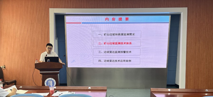 6月8日下午,中国安全生产科学研究院马海涛总经理作题为“边坡雷达监测与智能预警技术及在露天矿山应急救援中的应用”的报告,报告由安全学院副院长王亮教授主持。