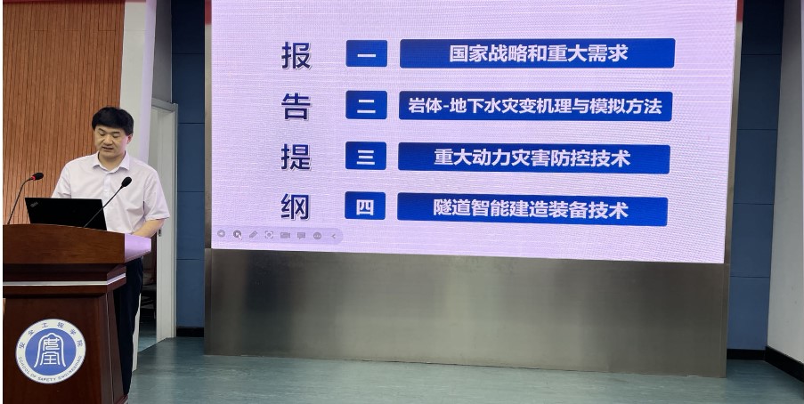 5月30日上午,山东大学李利平教授作题为“地下工程重大动力灾害防控与智能建造技术发展”的报告,报告由安全学院院长王恩元教授主持。