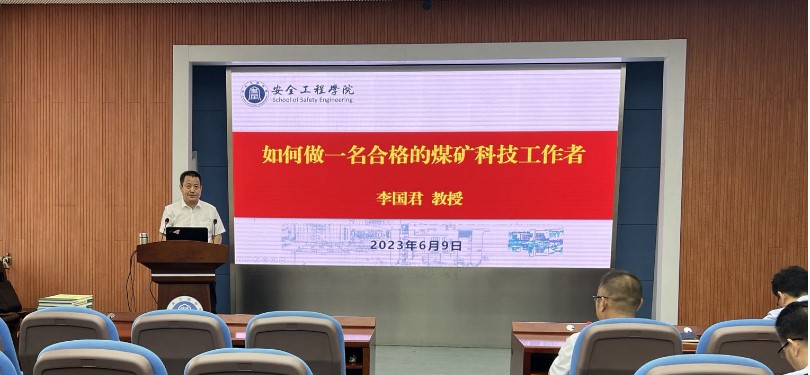 6月9日下午,抚顺矿业集团有限责任公司总工程师李国君作题为“如何做一名合格的煤矿科技工作者”的报告,报告由安全学院党委书记曲颂主持。