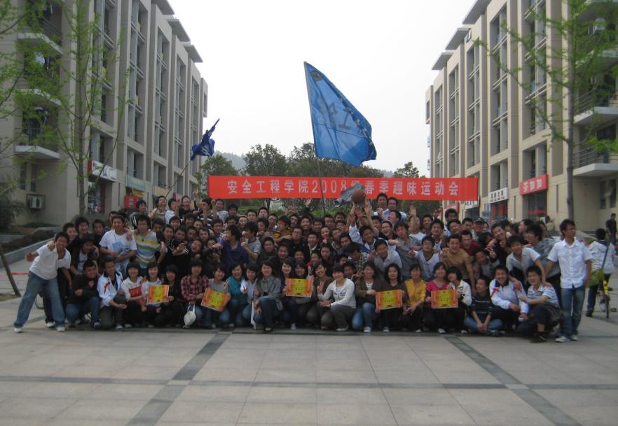 4月12日,由2008级年级团总支主办的“安全学院2008级第一届春季趣味运动会”在桃苑广场举行。此次趣味运动会由安全学院08级全体同学参加,08级辅导员李秀老师参加趣味运动会。此次运动会的口号是“丰富体育内涵,共建校园文化,鸣奏青春旋律,书写运动乐章”。