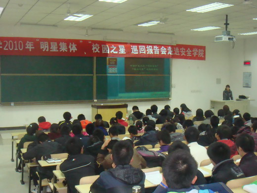 2010年“明星集体” “校园之星” 巡回报告会。明星班集体代表资源学院地质08-5班班长洪涛,力建学院星级宿舍竹4B511成员,电力学院08-1班学习优秀之星王海名,信电学院学术科研之星张琛,化工学院自强不息之星张志凯,材料学院社会活动之星文震等同学做了精彩的励志报告。韩国三级