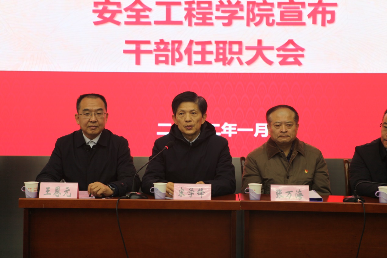 宋校长在讲话中指出,曲颂同志在学校党政部门工作多年,思想素质好,工作能力强,选拔该同志担任安全学院党委书记,充分体现了学校党委对学院的关心和重视。宋校长高度评价了王思华同志的政治素质、领导能力及工作作风,同时对王思华同志在任期间为安全学院事业发展所做出的贡献表示感谢。
