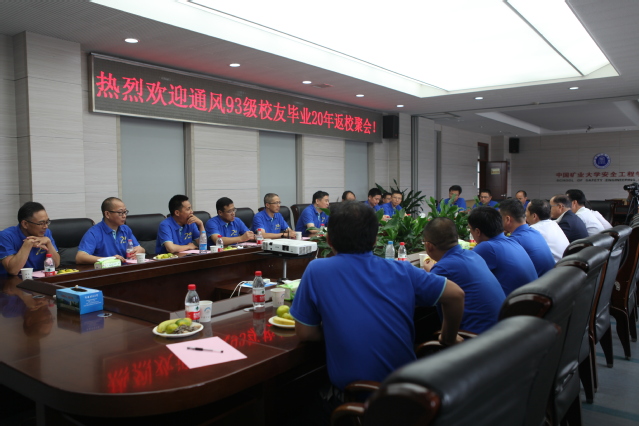会后,通风93级校友们来到矿业科学中心A412会议室与学院领导、老师举行座谈,院领导章毛平、钱雄、朱晓东、秦波涛以及王德明、林柏泉、程远平等部分教师出席活动。