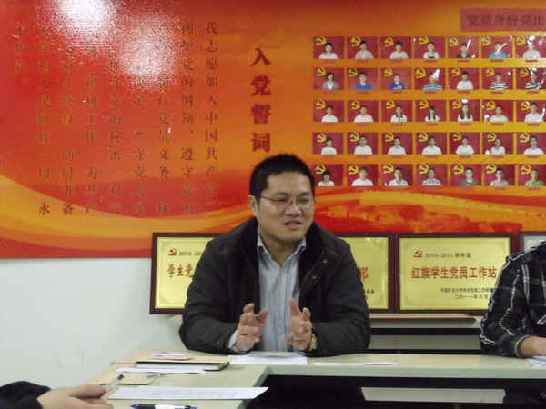 近日,根据学院党委关于做好基层组织建设年活动的具体安排,学院各党支部分别组织开展了党支部群众满意度测评工作。3月29日晚,安全08-3班党支部和安全09-4班党支部在梅苑三号楼党员工作站分别开展了测评工作,院党委副书记钱雄、辅导员刘静老师出席了此次测评活动。