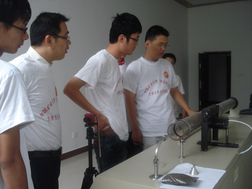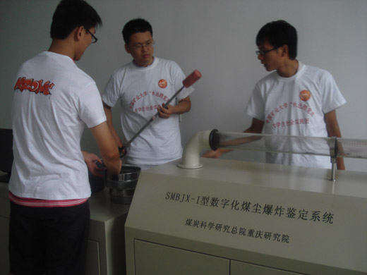 由于芦岭矿煤层存在着自燃发火倾向性,同时该矿也面临着瓦斯大,治理瓦斯任务艰巨的问题,所以该矿在火灾防治和瓦斯监测监控以及防治方面有着极其丰富的实践经验。“践行科学发展 科技服务煤矿”博硕团首先对芦岭矿的地面注浆站、瓦斯解析实验室和煤尘爆炸实验室进行参观。在参观实验室过程中,矿上相关人员给实践团成员详细讲解了他们瓦斯解析实验平台的工作原理以及该矿SMBJX-1型数字化煤尘爆炸鉴定系统的鉴定原理,并与实践团成员展开热烈的讨论,成员们收获颇多。实践团成员在了解芦岭矿在防治火灾和治理瓦斯方面的实践经验的同时,也及时向该矿介绍最新的防治技术,并根据具体问题提出了自己的建议。随后,实践团又参观该矿的大型选煤厂,在选煤厂参观过程中,相关负责人详细讲述了该矿选煤过程以及当前比较受欢迎的几种选煤方法。
