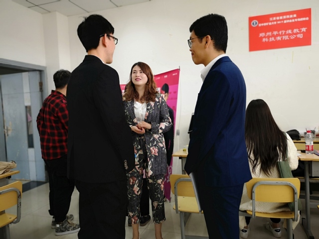 2019届毕业生专场招聘会于南湖校区博四、博五举行。安全学院党委书记章毛平、学工办主任于基伯、团委书记孙婷、辅导员李鸣轩来到双选会现场对韩国三级