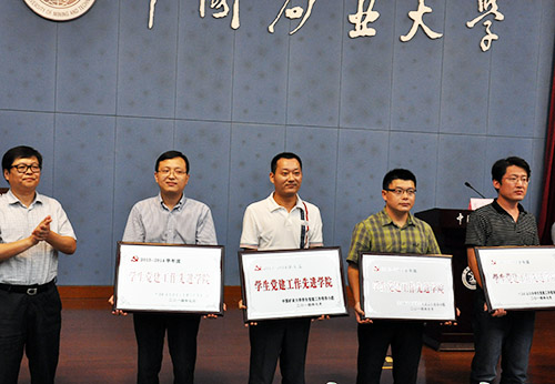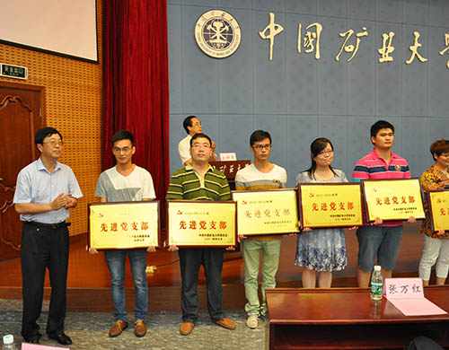 一批基层党组织和个人受到表彰。院长周福宝教授荣获“江苏省高等学校优秀共产党员标兵”称号。煤矿瓦斯治理研究所第一党支部、矿井通风与防灭火第一党支部被评为“2012-2014年度校级先进党支部”;钱雄荣获“优秀党务工作者”称号;孙留涛、王亮等2人荣获“优秀共产党员”称号;王青祥同学被评为“优秀大学生共产党员”。在2013-2014学年度学生党建评优中,韩国三级
