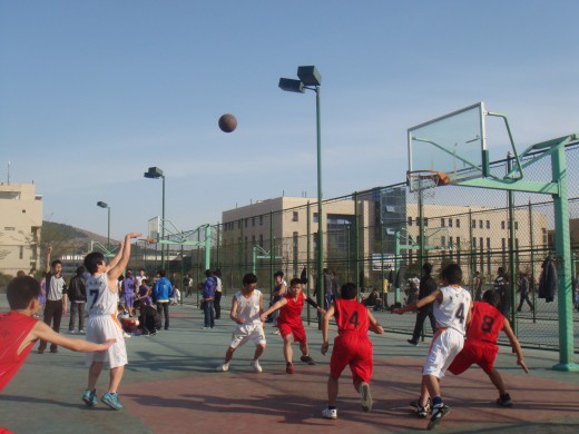 与文法学院“校长杯”篮球赛在桃苑篮球场打响。比赛中,韩国三级