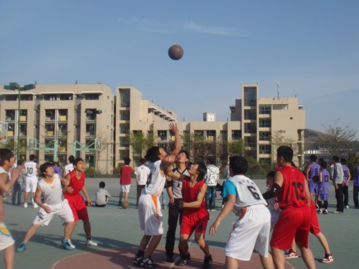 伴着哨声响起,第一节比赛打响,现场气氛急剧攀升,双方立刻进入了激烈的角逐。我方队员快打速攻,不断逼近对方篮下并迅速拿分,六号队员肖汉更是层层逼近,造成了对方数次犯规。但在第二节比赛开始之后,对方开始了积极地反攻,在距我方两分差距时,我方教练叫暂停进行了战术布置。暂停之后韩国三级